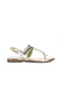 Flip-flop sandals with dragonfly-shaped applications. lining and insole are in leather. the heel is 2 cm high. comfortable to wear and easy to match.