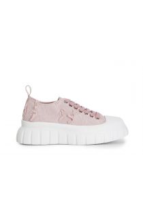 Frayed fabric lace-up sneakers. rubber toe. closure with laces matching the shoe. 55mm raised sole decorated with a striped pattern.