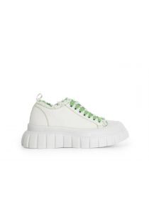 Lace-up sneakers in frayed fabric and contrast stitching. rubber toe. tone-on-tone lace-up closure at contrasting seam. 55mm raised sole decorated with a striped pattern.