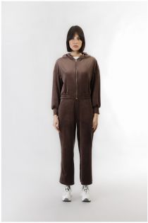 Sweatshirt with front zip and hood made of soft chenille. the hood lining is printed. extremely comfortable functional and trendy garment.