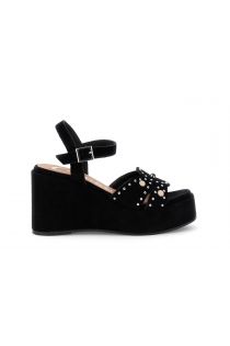 gilda suede wedge sandals with studs and cabochons black