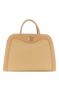 Grainy faux leather tote with an embossed frame and gold-tone metal Café Noir logo. It features a removable shoulder strap for practical and versatile use.