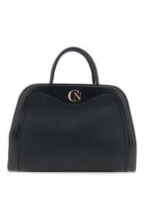 Grainy faux leather tote with an embossed frame and gold-tone metal Café Noir logo. It features a removable shoulder strap for practical and versatile use.