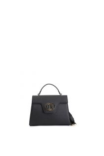 Handbag with flap in saffiano with matching oval enamelled logo. internal zip pocket. magnetic closure. removable shoulder strap.