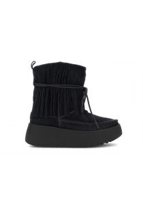 Suede ankle boots with fringe and front laces. Faux fur lining and insole for extra comfort. 4 cm platform sole. Boho style and guaranteed warmth.