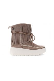 Suede ankle boots with fringe and front laces. Faux fur lining and insole for extra comfort. 4 cm platform sole. Boho style and guaranteed warmth.