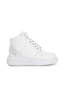 Ankle-high leather sneakers. side seams and a pretty ribbon at the back with cafènoir writing made of rhinestones enhance the shoe. the sole is box-shaped and the insole is leather.