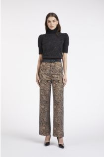 high-waisted palazzo trousers in jacquard fabric