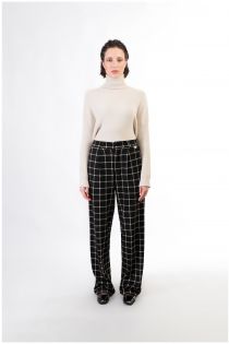 Wide fit trousers with front pleats and elasticated back waist. made of checked jacquard fabric. with a sophisticated style to match with the coordinated jacket.