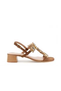 Leather sandals with an ankle strap and a t-bar design embellished with large decorative stones for a bold and luminous touch. leather insole. feminine silhouette stable 4 cm heel and comfortable fit. perfect for adding character to even the most casual looks.