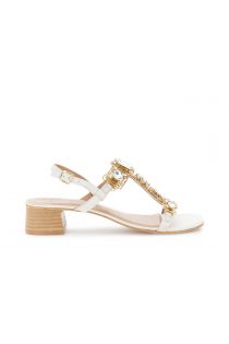Leather sandals with an ankle strap and a t-bar design embellished with large decorative stones for a bold and luminous touch. leather insole. feminine silhouette stable 4 cm heel and comfortable fit. perfect for adding character to even the most casual looks.
