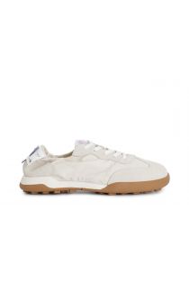 Lace-up sneakers in nylon fabric and suede. customization with logo and rhinestones on the back. leather insole. lightweight flexible shoe with a functional style. these sneakers will accompany you both during training and in the city on busy days.