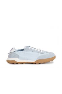 Lace-up sneakers in nylon fabric and suede. customization with logo and rhinestones on the back. leather insole. lightweight flexible shoe with a functional style. these sneakers will accompany you both during training and in the city on busy days.
