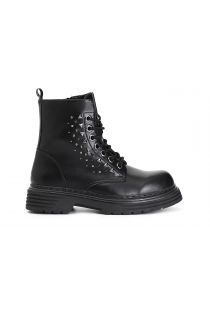 High women's lace-up leatherette ankle boot embellished with trendy studs.