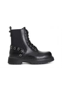 laced faux leather ankle boot with elastic and eyelets black