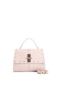 Large flap with faceted studs. twist turn lock with cafènoir logo. bag with adjustable shoulder strap.
