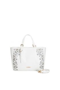 laser-cut floral shopping bag with rivets, adjustable handles and removable shoulder strap white