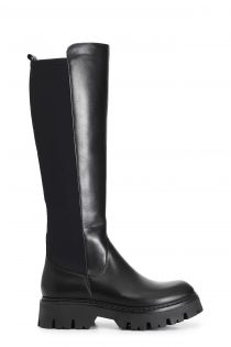 Women's boot made of leather and stretch fabric for a super edgy look. the insole is leather. a versatile and dynamic model ideal for completing many outfits.