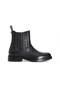 Women's leather ankle boot with concealed stretch panel enriched by a cascade of studs. the heel is 30mm high and the insole is leather.