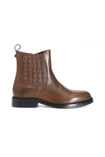 Women's leather ankle boot with concealed stretch panel enriched by a cascade of studs. the heel is 30mm high and the insole is leather.