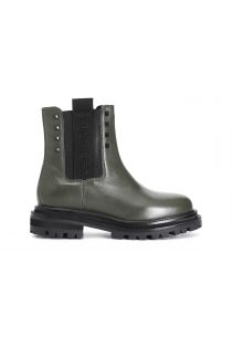 Women's leather ankle boot with stretch panel enriched with a distinctive cafènoir logo ribbon and trendy studs. the insole is leather.