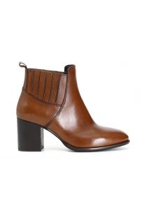 Women's leather ankle boot with concealed stretch panel to make them easier to put on. the heel is 65mm. comfortable leather insole.