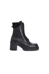 Leather ankle boots with back padding. Work boot sole with 6.5 cm heel