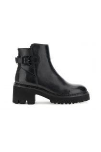 Leather ankle boots with a side buckle, a lug sole, and a leather insole. The 6.3 cm heel adds elegance and comfort. Perfect for a bold, contemporary look.
