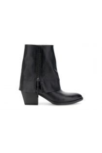 Black leather ankle boots with a soft cuff and internal zip. Leather lining and insole for total comfort. 7 cm block heel. Bold style with a contemporary twist.