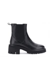 Women's stretch leather ankle boots with a lug sole, a 5.5 cm heel, and a 2.5 cm platform. Bold and comfortable design with a leather insole. Perfect for urban and contemporary looks.