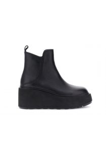 Black leather ankle boots with a side zip closure. Minimalist design and a 7.5 cm platform sole with a 4 cm wedge for a comfortable and modern urban look. Leather lining.