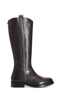 Leather boot with a cascade of side studs that give both harmony and dynamism through a pattern of stitching. the insole is leather.