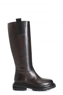 Women's zipped leather boot embellished with a distinctive black cafènoir logo ribbon. the insole is leather.
