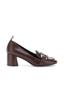 leather effect décolleté with clamp bordeaux