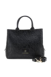 leather effect handbag with all-over embossed logo black