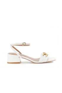 Elegant leather-look sandals with an adjustable ankle strap. they feature an open toe with a decorative metal accessory and a comfortable leather insole. they feature a 4 cm block heel. ideal for refined summer looks they combine style and everyday practicality.
