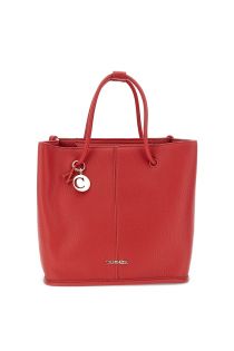leather effect tote with tubular handles, metal charm red