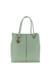 Faux leather bucket bag with sliding tubular handles, metal eyelets, and a removable charm. A modern look and sophisticated details for bold outfits.