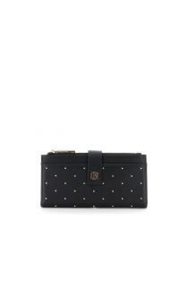Leather-effect wallet with double zip, flat pocket on the front and mini stud appliqués.