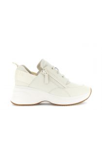 Women's lace-up running shoes in coated leather and mesh with a side zip and a 5.5 cm sole. leather insole and fabric lining. comfort and style for sporty and dynamic looks by cafènoir.