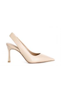 Elegant leather slingback pump with elastic lace at the back. lining and comfortable insole are in leather. 8.5 cm high heel with tapered shape. a timeless classic that cannot be missing from your wardrobe.