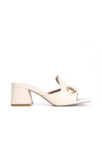 Leather slippers with gold accessory. leather insole. 50 mm-high heel.