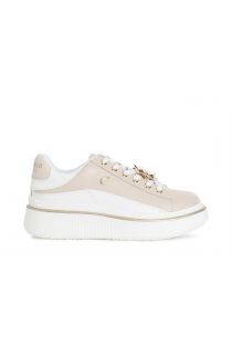 Women's lace-up sneakers in covered leather with 3 cm platform. shoe with particular removable accessory on the laces. round tip. internal footbed. 4.5 cm high sole. perfect for those who want to combine comfort and stand out on every occasion of the day.