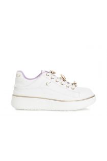 Women's lace-up sneakers in covered leather with 3 cm platform. shoe with particular removable accessory on the laces. round tip. internal footbed. 4.5 cm high sole. perfect for those who want to combine comfort and stand out on every occasion of the day.