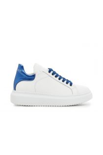 Leather sneakers with box sole with four different coloured laces to match according to the combination required.