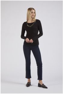 Tshirt with round neckline and long sleeves made with warm and comfortable viscose jersey. a precious jewel chain decorates the neckline like a necklace.