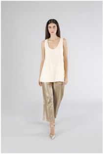Bi-material tank top with crossed back made of mixed fabric with viscose satin back. perfect to match with trousers or jeans.