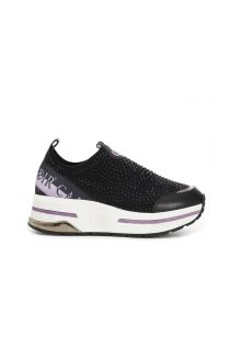 Lycra slip-on shoes decorated with a cascade of matching rhinestones. A best seller in the history of the CafèNoir brand, it is now back with a newly designed sole and a logo on the side