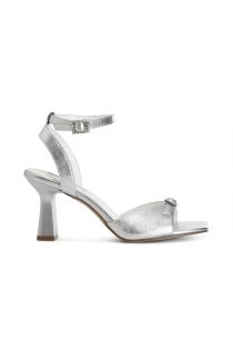 Metallic effect sandals. strap with buckle. ankle lacing. leather insole. 70 mm-high heel.