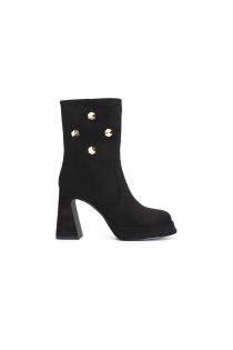 Women's microfibre ankle boot with four hexagonal studs. a perfect seventies-style shoe the 95mm high heel together with the 18mm platform are a perfect mix of height beauty and comfort.